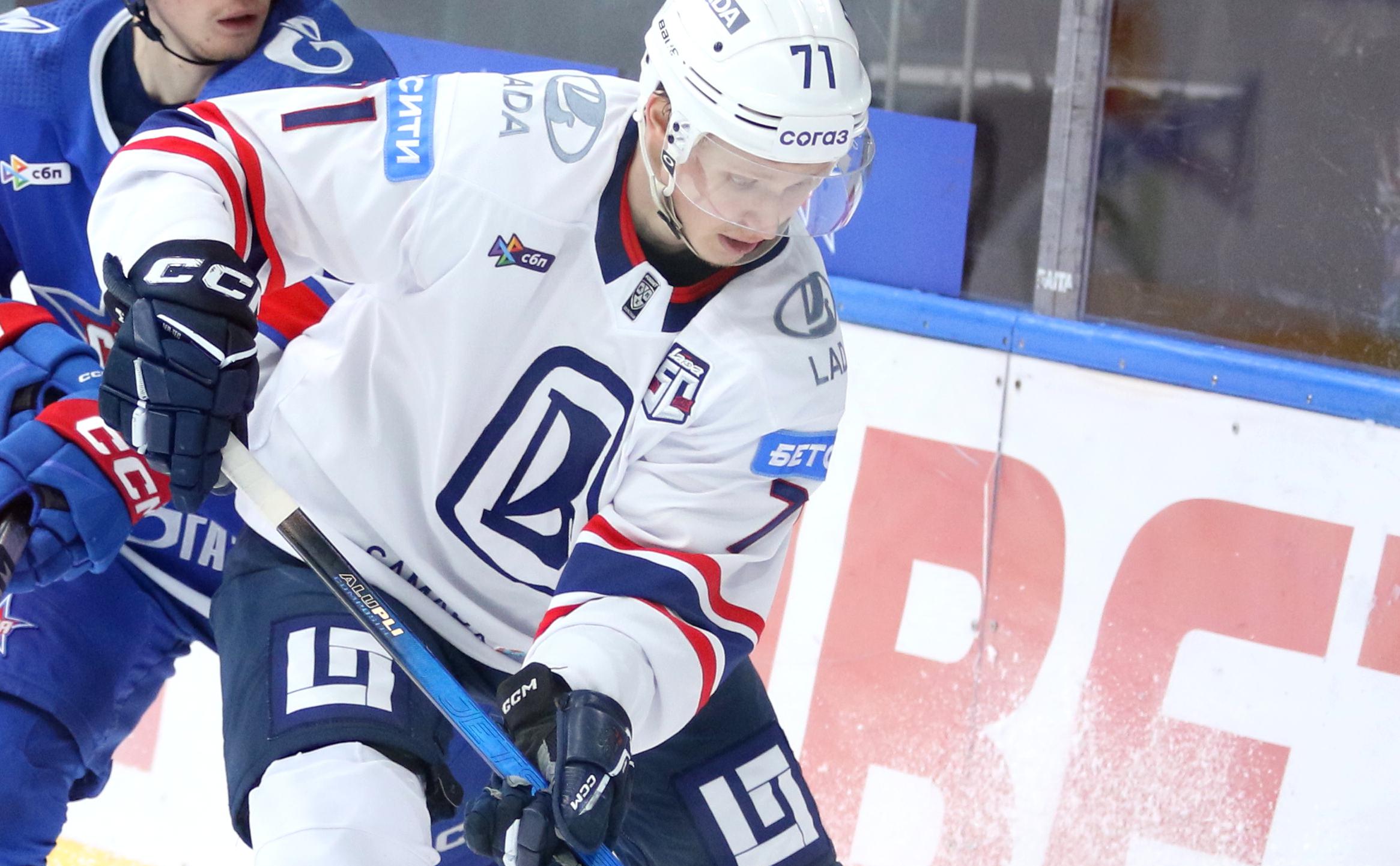 Форвард «Лады» Данил Башкиров в один из моментов не успел вернуть упавшую клюшку своему вратарю и в итоге оборонялся сразу с двумя, за что получил двухминутный штраф