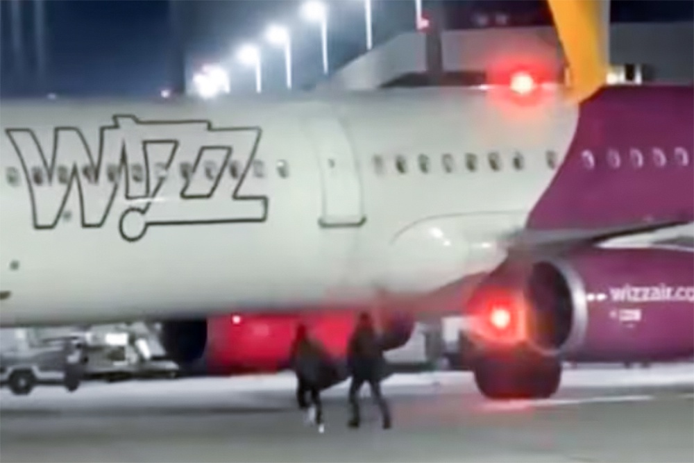 В Германии в аэропорту Кельна произошел инцидент на рейсе в Бухарест бюджетной авиакомпании Wizz. Аэробус А321 уже покинул гейт, двигатели работали. Самолет направлялся к взлетно-посадочной полосе. В это время перед лайнером на поле неожиданно появились двое мужчин, сообщает журнал Blick.
