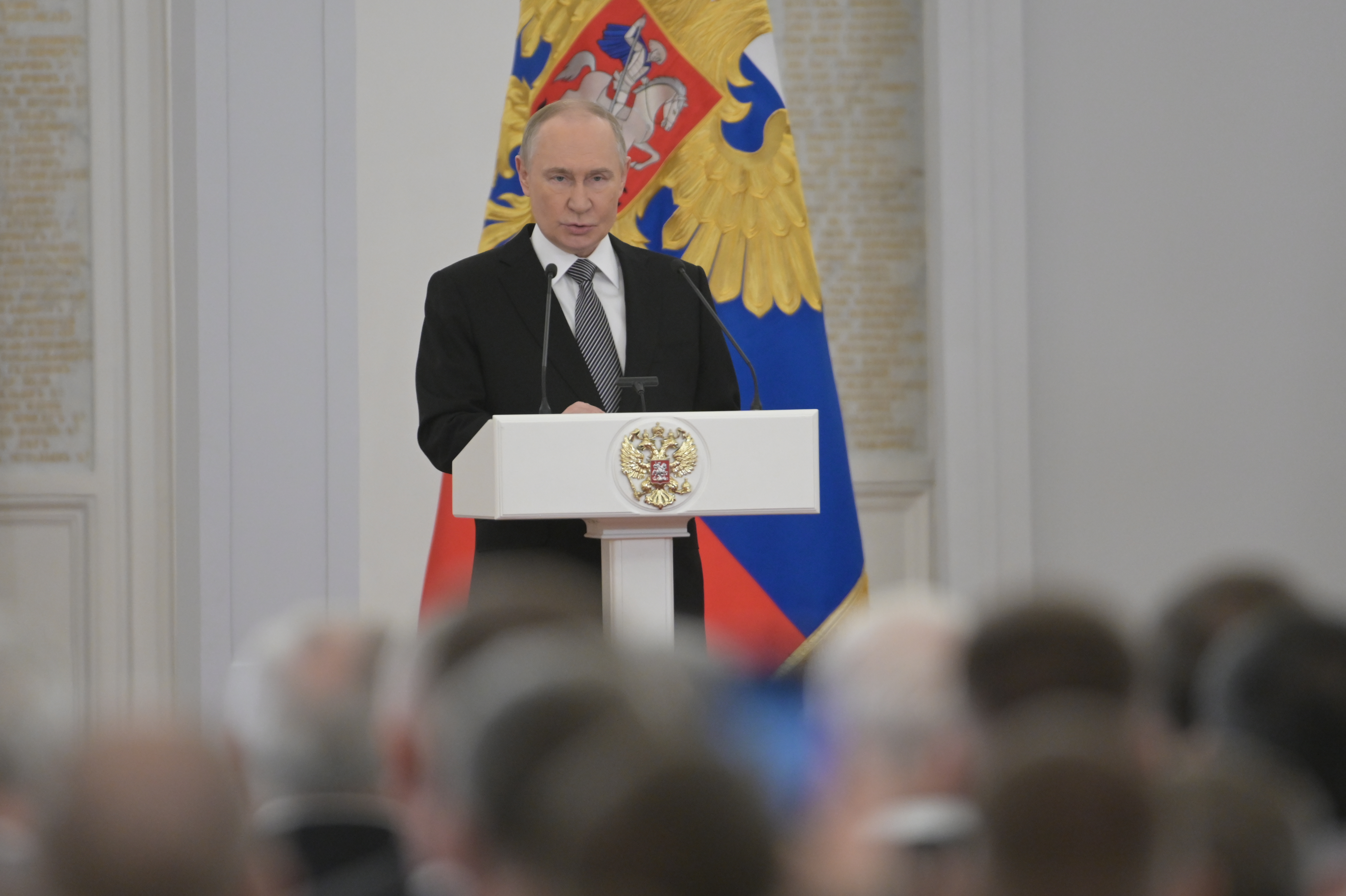 Президент России Владимир Путин вручил высшие государственные награды военнослужащим, участвовавшим в освобождении города Северска в Донецкой Народной Республике. Церемония прошла после заседания расширенной коллегии Министерства обороны, кадры публикует пресс-служба Кремля.