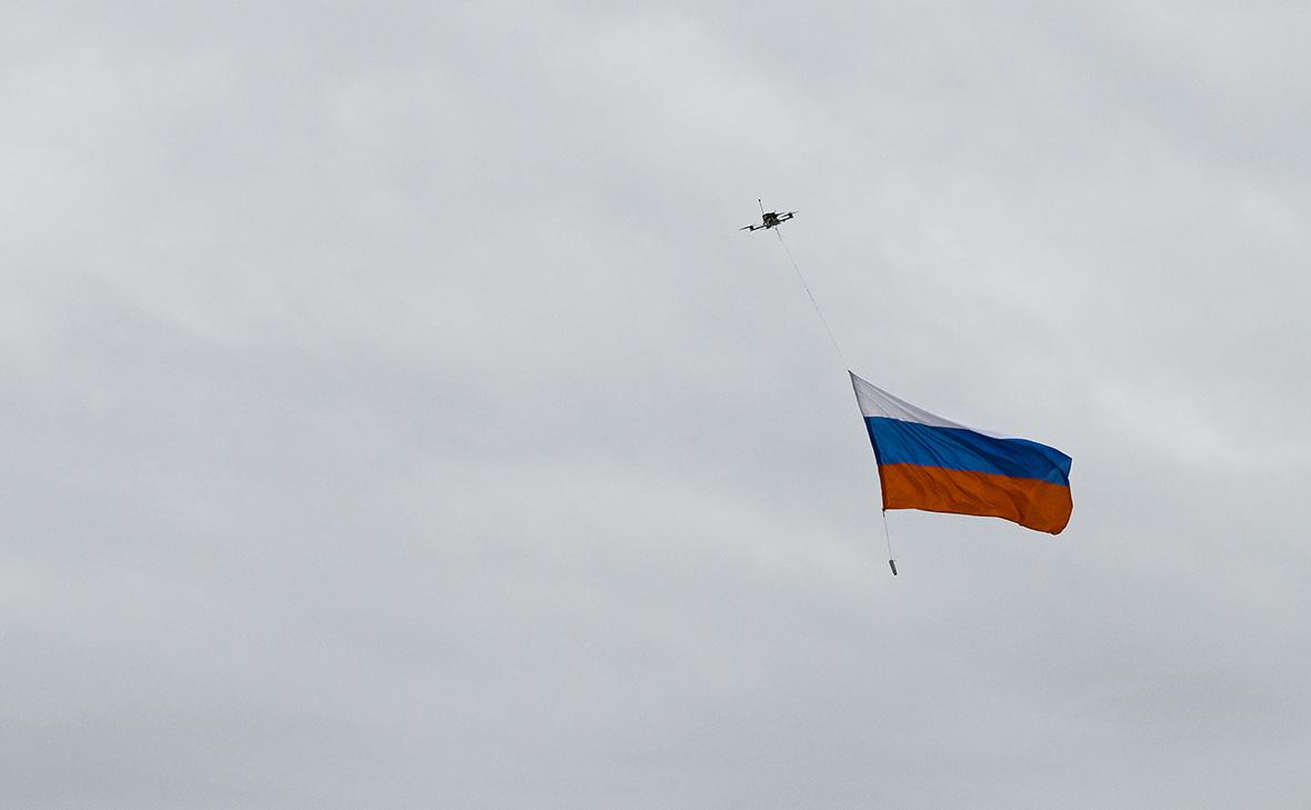 В центре Киева неизвестные запустили беспилотник с российским флагом, аппарат поднялся в небо и упал, сообщает «Новини.LIVE».