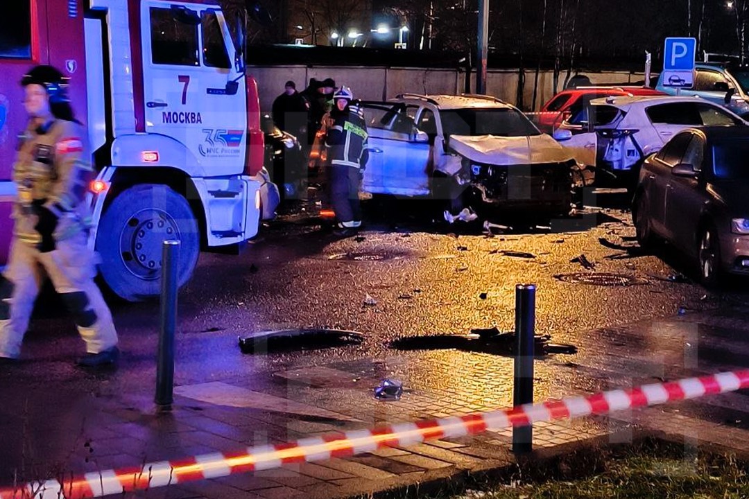 Водитель марки Kia Sorento успел проехать несколько метров, прежде чем произошёл взрыв. Машина осталась стоять посреди парковки, и осколки повредили по меньшей мере семь других автомобилей.