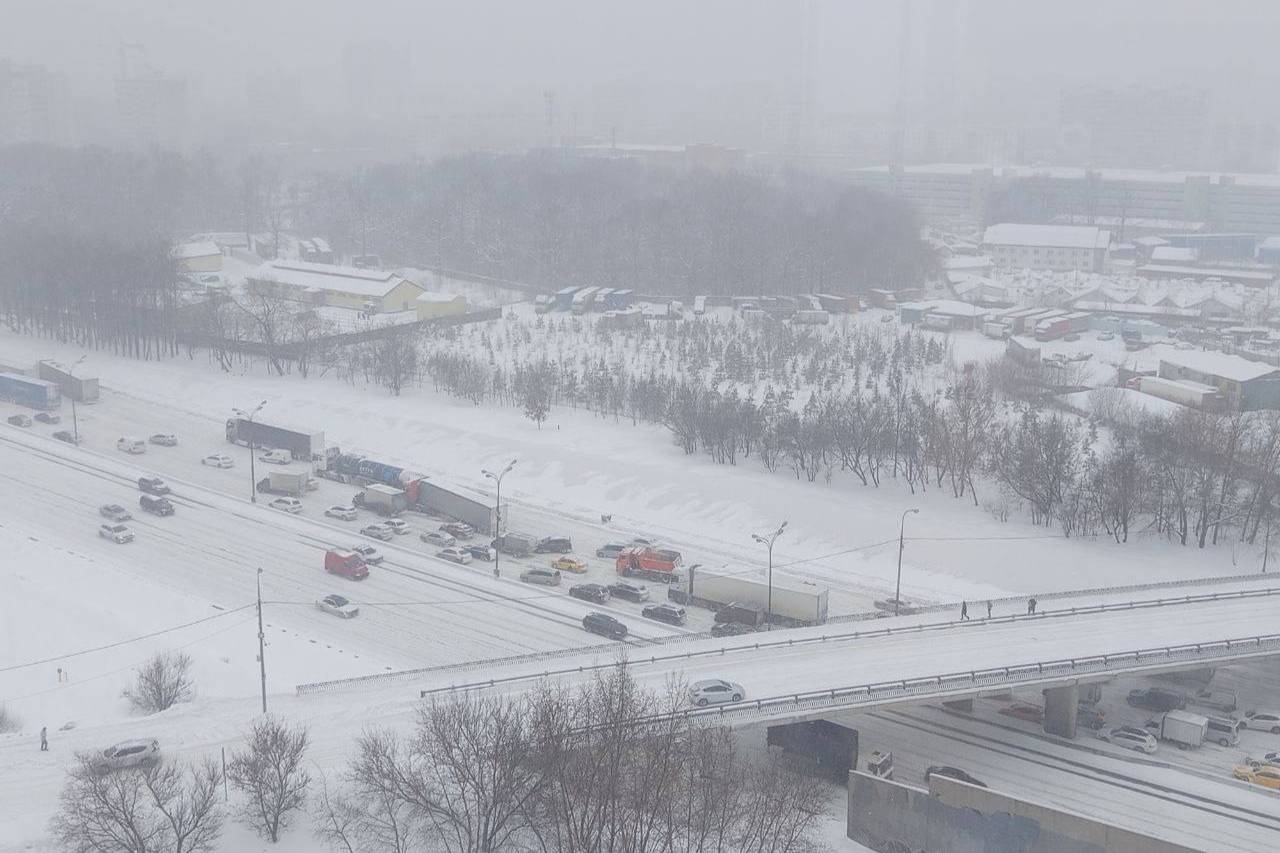 Водителей предупредили о больших пробках на МКАД из-за мощного снегопада
