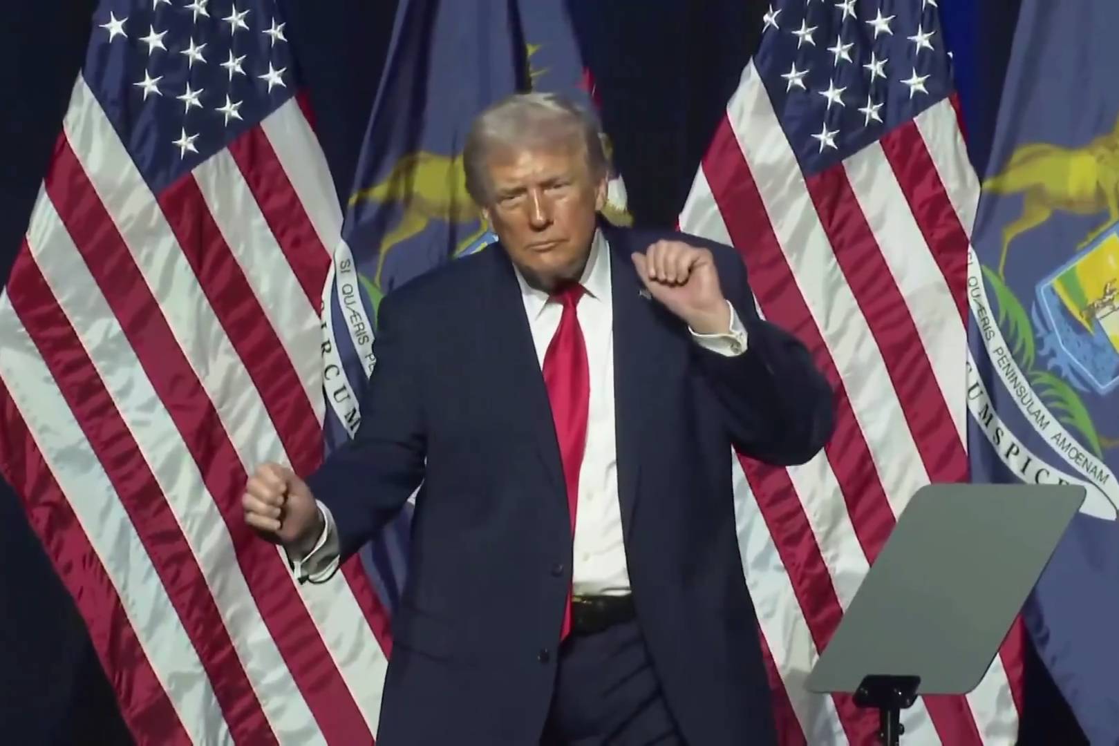 Президент США Дональд Трамп в Детройте завершил речь исполнением фирменного танца под песню YMCA группы Village People. Кадры с этим моментом активно расходятся в соцсетях.