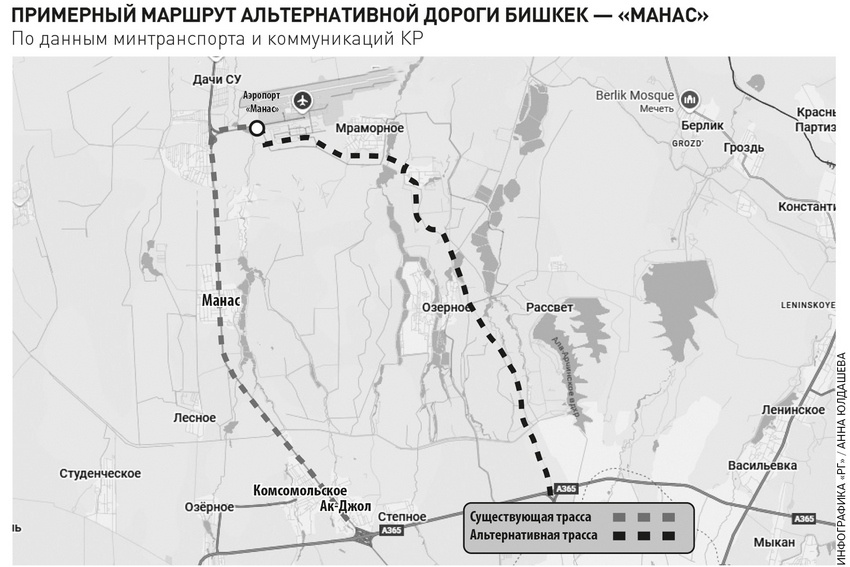 Путь от столицы Кыргызстана до международного аэропорта "Манас" и обратно станет более комфортным. Воздушные ворота страны и Бишкек намерены соединить еще одной автотрассой. Об этом сообщают в пресс-службе министерства транспорта и коммуникаций КР. В минувшие выходные, по данным ведомства, с проектом альтернативной дороги ознакомили замглаву правительства КР Бакыта Торобаева.