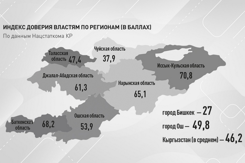 Доверие населения к органам власти растет. Позитивной для государственных и муниципальных структур новостью поделился со ссылкой на исследование Нацстаткома республики глава правительства КР Адылбек Касымалиев.