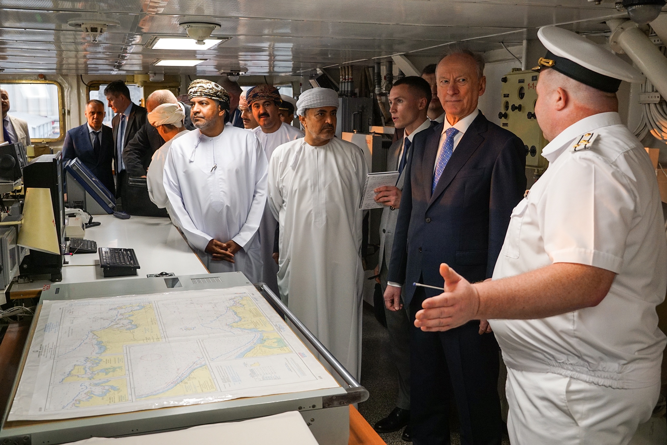 Рабочая поездка в Оман помощника президента, председателя Морской коллегии Николая Патрушева началась с посещения фрегата Тихоокеанского флота ВМФ России "Маршал Шапошников".
