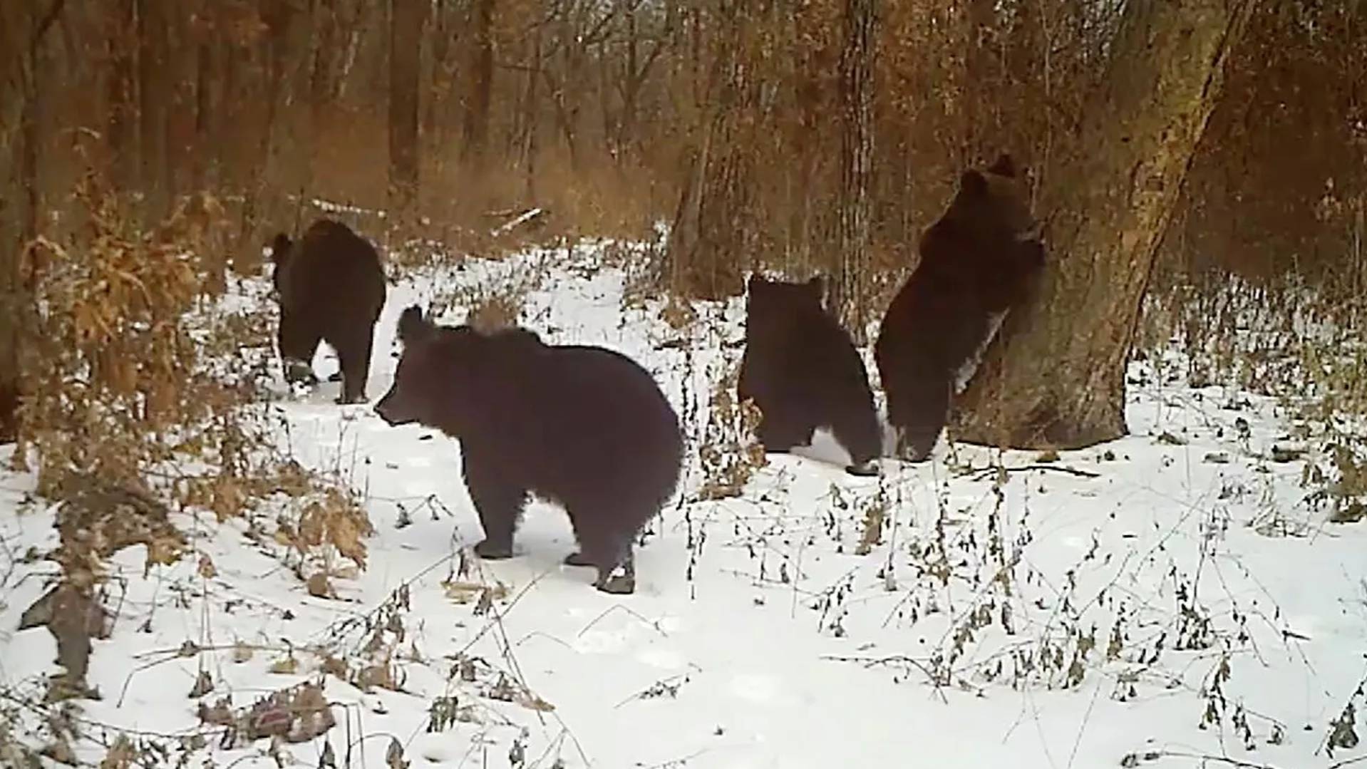 В Хинганском заповеднике Амурской области фотоловушка запечатлела четверых медвежат, чьи игры в заснеженном лесу напомнили сотрудникам знаменитое полотно «Утро в сосновом лесу». Кадры были сняты ещё в ноябре 2025 года в центральной части заповедника.