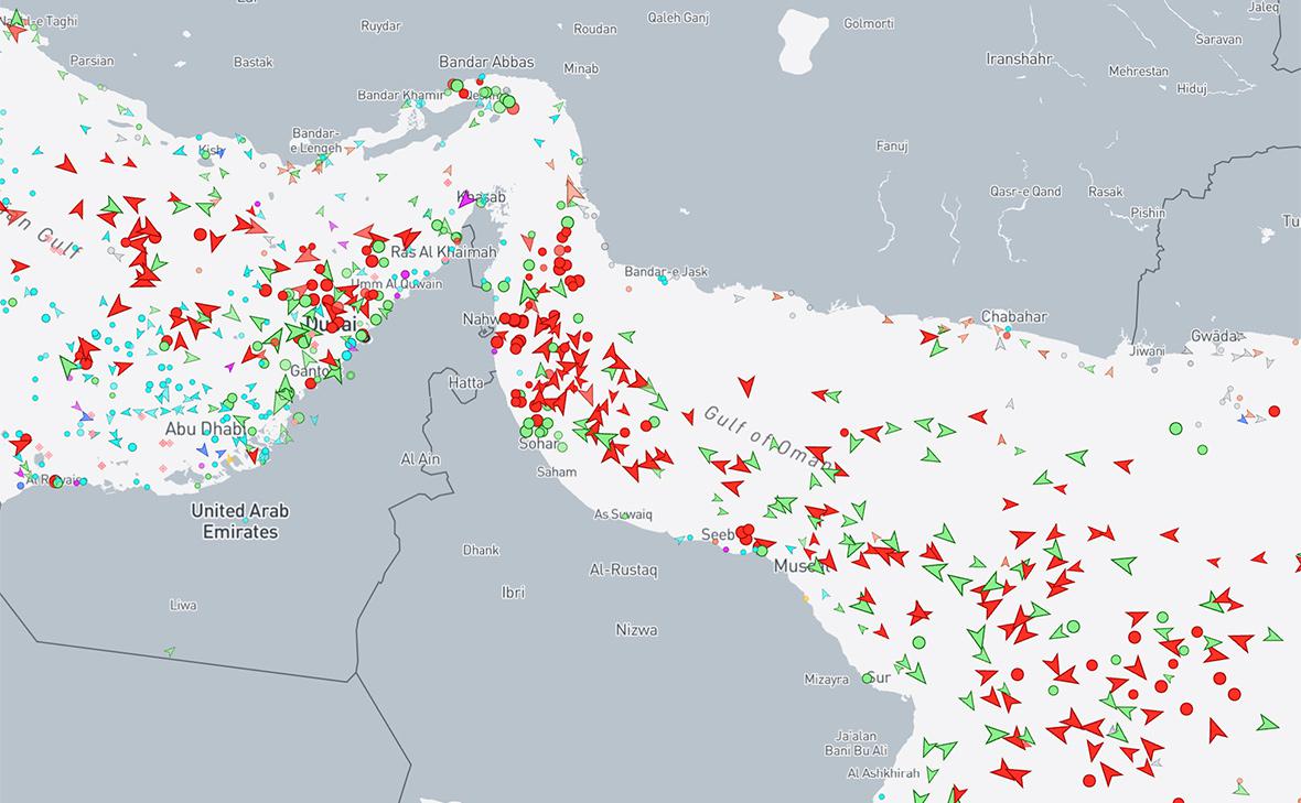 Движение в Ормузском проливе практически остановлено, свидетельствуют данные сервиса MarineTraffic.
