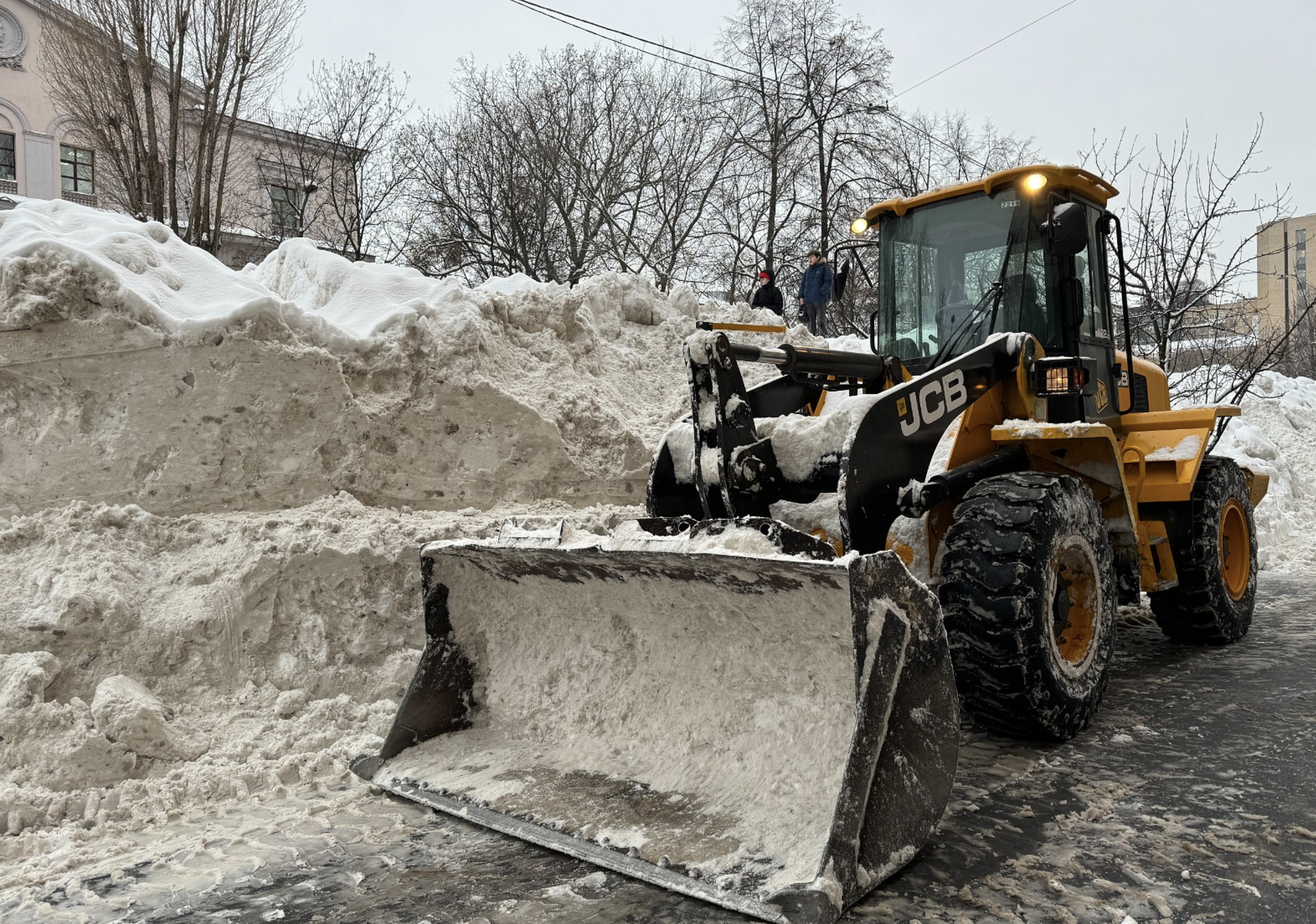В подмосковном Звенигороде огромная масса снега обрушилась с крыши во двор многоэтажки. За минуту до ЧП там прошла девушка с собакой, поэтому пострадали только припаркованные у здания автомобили. Кадры снежной «лавины» публикует Mash.