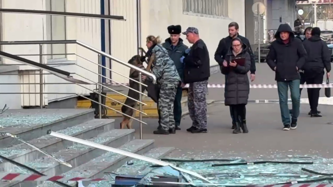 В Москве служебная овчарка чуть не сорвала обследование места взрыва у отделения Россельхозбанка. Вместо работы она хотела играть и облизывать кинологов.