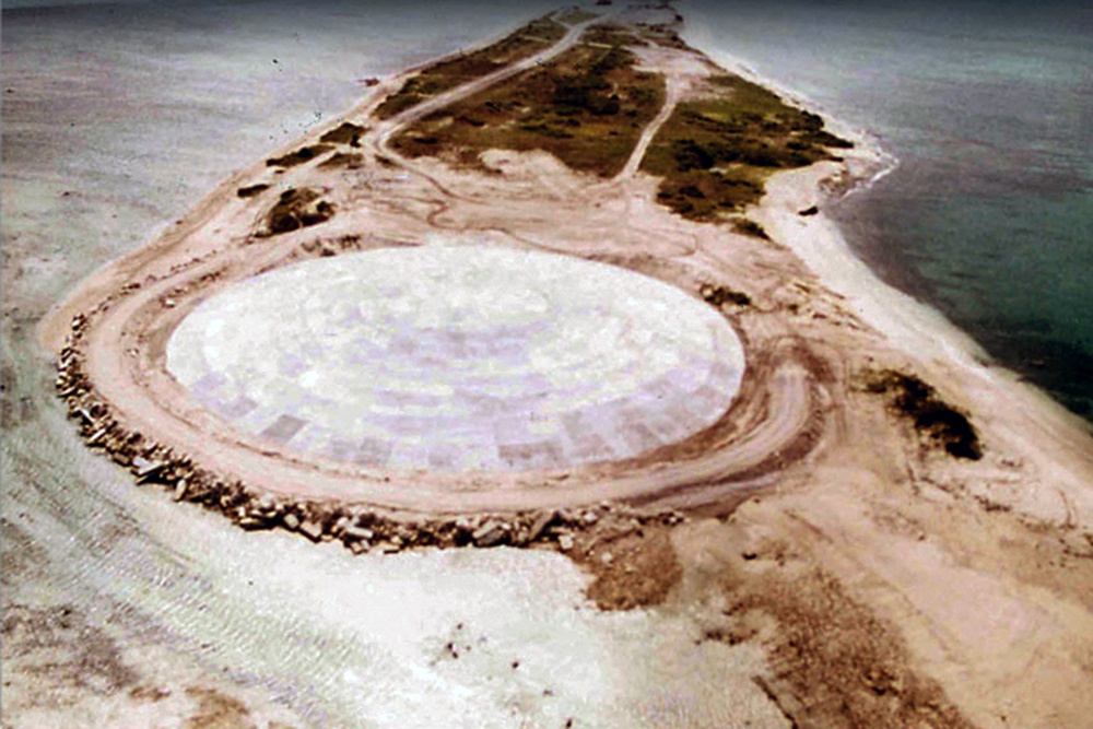 На атолле Рунит, принадлежащем Маршалловым Островам, трескается бетонный купол, под которым после ядерных испытаний США уже почти 50 лет лежат тысячи тонн радиоактивных отходов. Специалисты бьют тревогу: глобальное потепление и повышение уровня океана превращают американскую свалку в угрозу человечеству.