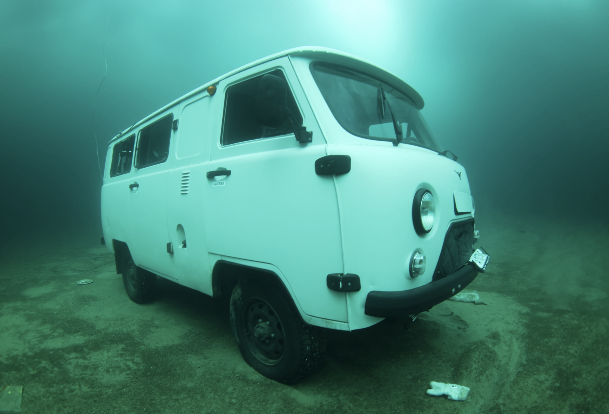 Дайвер Дмитрий Роговой заснял на дне Байкала автомобиль УАЗ, который ушёл под лёд вместе с китайскими туристами во время экскурсии. Снимок появился на странице фотографа в VK.