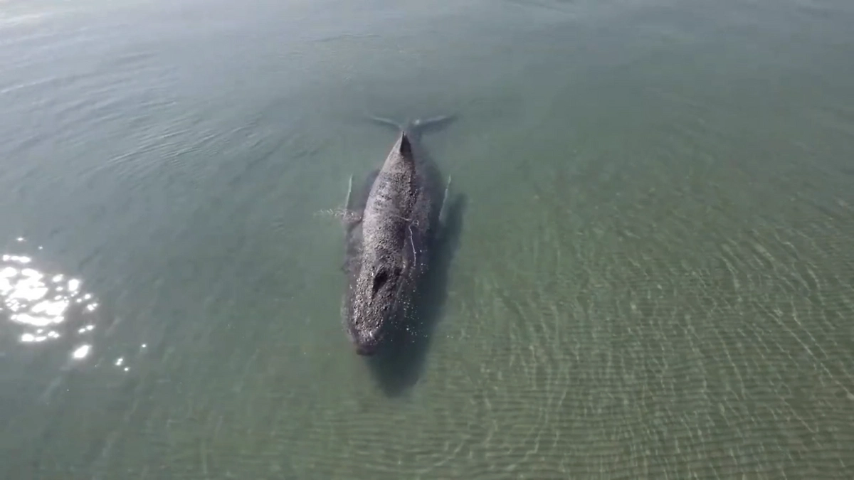 10-метровый горбатый кит, который почти четверо суток не мог выбраться из мелководья в Балтийском море, сумел уйти на свободу через плавательный канал. Его прорыли плавучие экскаваторы, пишет Telegram-канал SHOT.