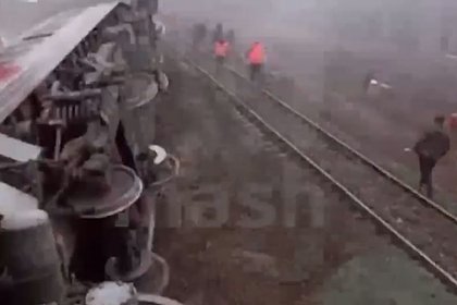 Появились первые кадры с места схода вагонов поезда с сотнями пассажиров в России