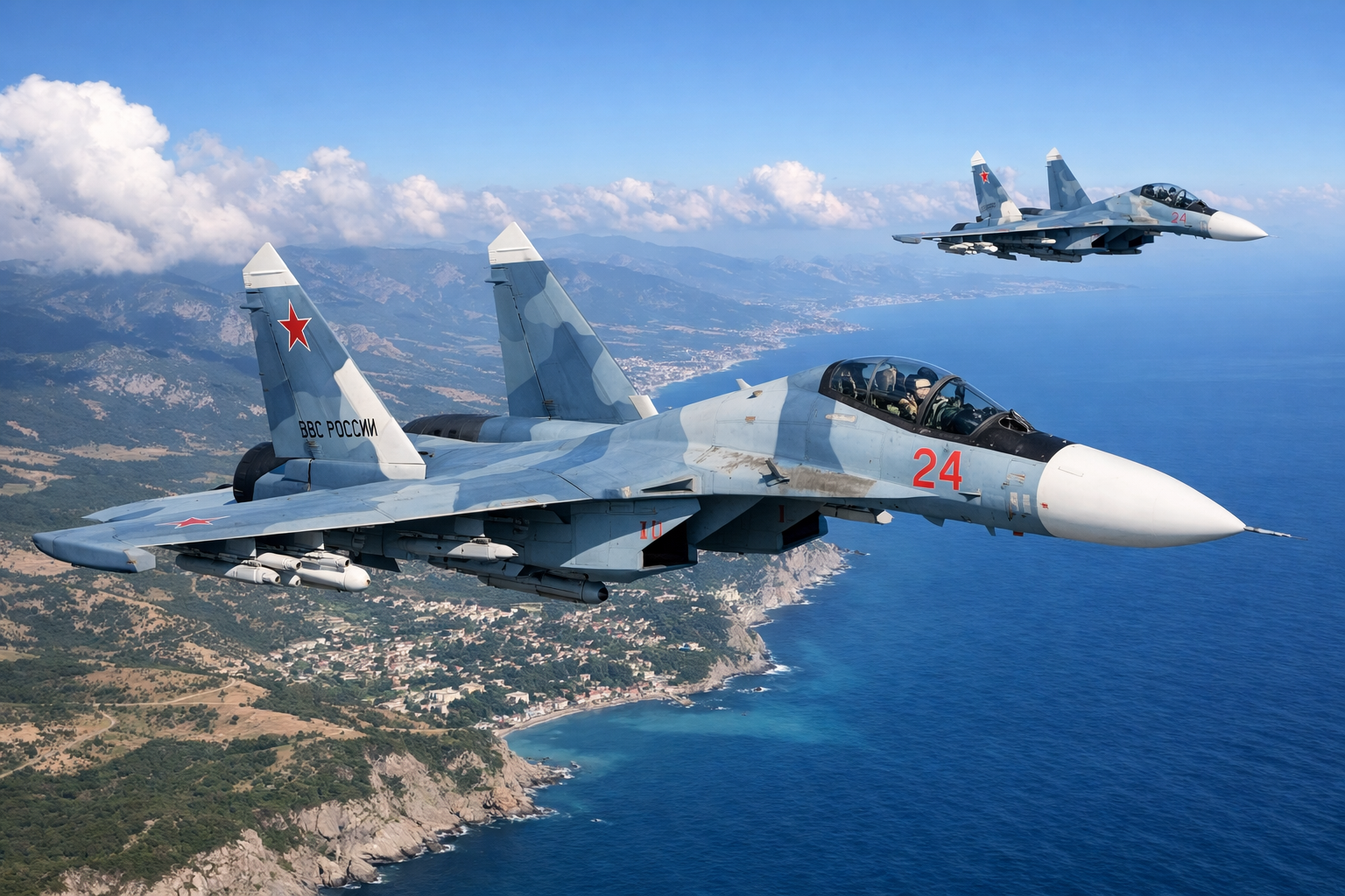 Самолет Су-30 потерпел аварию в Крыму во время планового учебно-тренировочного полета. Об этом сообщили в Минобороны России.