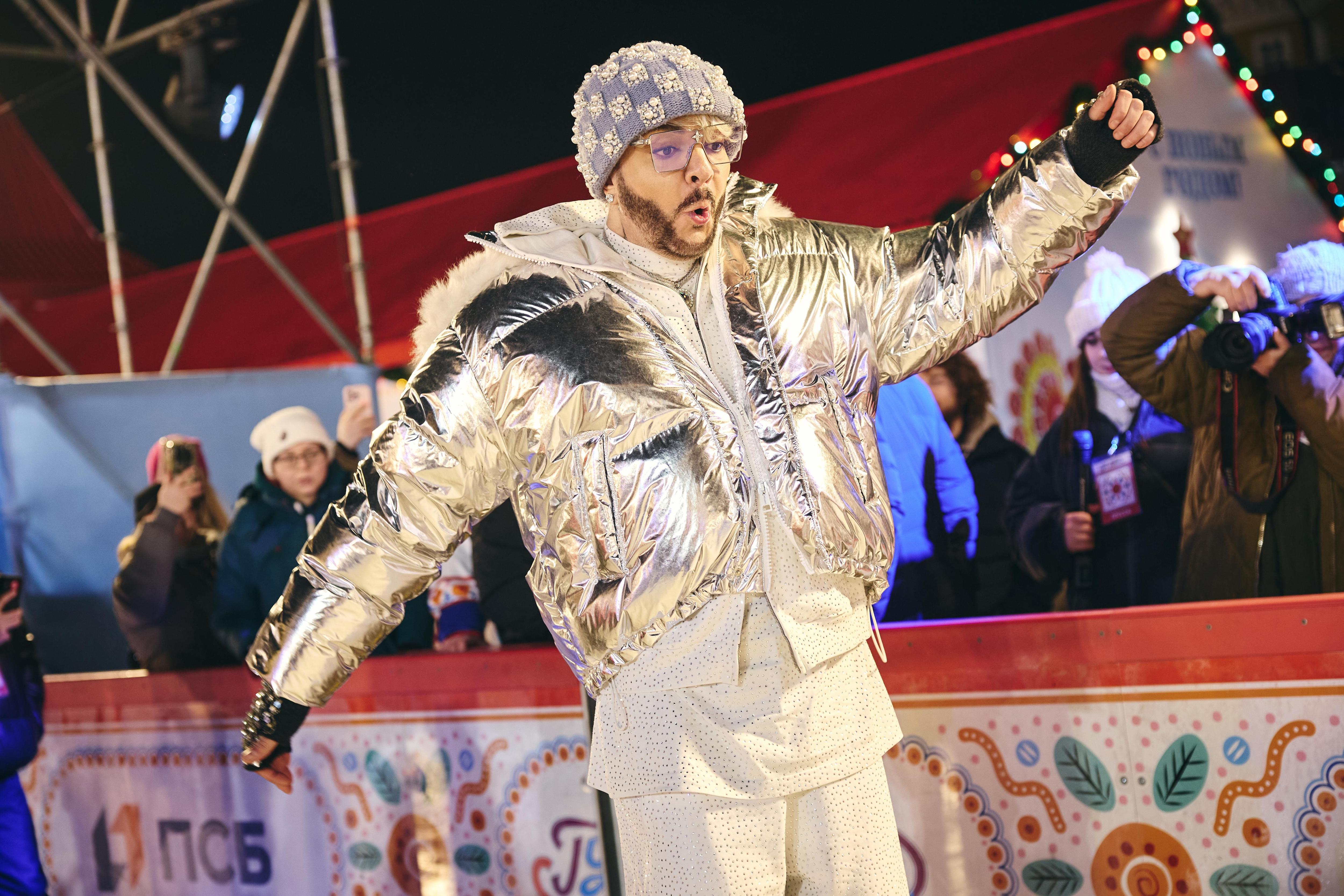 На коньки в этот вечер встал даже Филипп Киркоров, но быстро понял: лед не для него — лучше он будет петь.