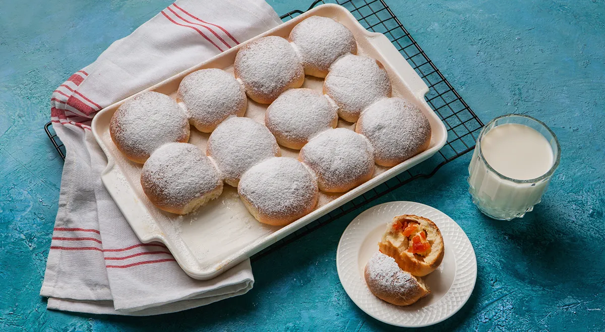 Булочки с курагой — мягкие, воздушные, как облачко. Рецепт их приготовления очень прост и испечь десерт по нему сможет даже тот, кто никогда не работал с дрожжевым тестом: специальных знаний и навыков для этого вам не потребуется. Да и ингредиенты нужны простые, все найдётся в ближайшем супермаркете. Главное — купить качественные, свежие дрожжи, именно от них будет зависеть результат. Тесто замешивается руками и не требует специального оборудования. Поэтому, такие булочки с курагой из дрожжевого теста станут прекрасным решением, когда хочется испечь что-то к чаю.
