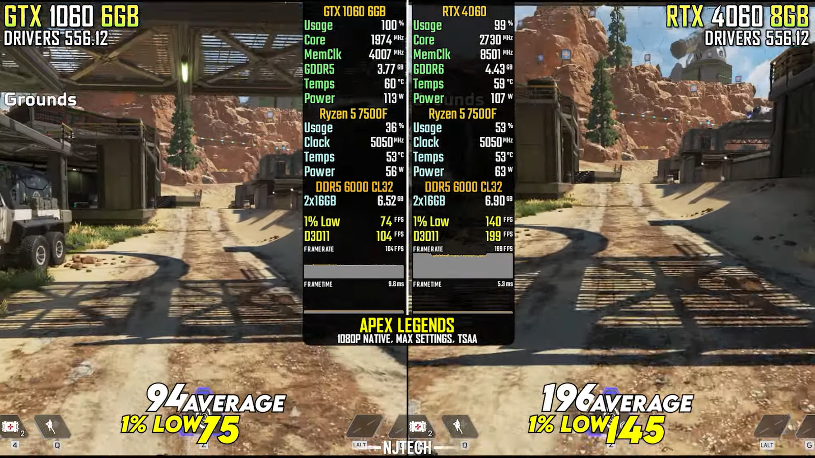 На YouTube-канале NJ Tech выяснили, какой частоты кадров в среднем стоит ждать от GTX 1060 и RTX 4060 в Full HD.